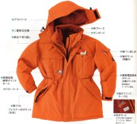 【特徴】袖口マジックテープ、衿フリース、二重前立て仕様、前立て切り返しで雨や冷気を遮断、ウエスト部ドローコード
