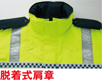 ★脱着式肩章…ボタンで取り外し可能な肩章。別あつらえで階級や部署別のワッペンや目印などが取り付け可能。