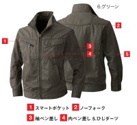 【仕様】長袖ブルゾン、スマートポケット、ひじダーツ、ノーフォーク、袖ペン差し、内ペン差し、金属ボタン、右胸ポケット・フロントファスナー:金属ファスナー