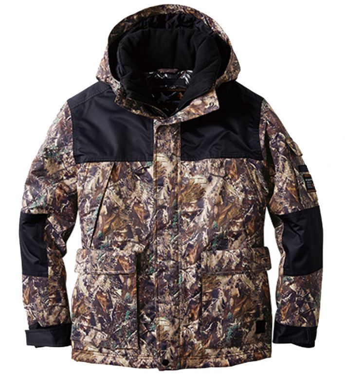 【仕様】防水防寒ブルゾン、着脱式フード、衿フリース(中綿入り)、背当てアルミプリント、フードドローコード、ヒヨク内側ファスナーポケット、内ペン差し、右胸ファスナーポケット、フラップ付きポケット、脇ポケット(甲側フリース仕様)、袖ポケット、左胸テープポケット、袖内側リブ、袖口アジャストテープ、裾ドローコード、アルポプケロゴマーク、GGオリジナルネーム、樹脂ファスナー、金属ボタン