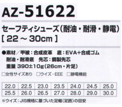 【素材】先芯:鋼製先芯(JSAA規格 A種合格品)、甲被:合成皮革、靴底:EVA+合成ゴム 耐油・耐滑底