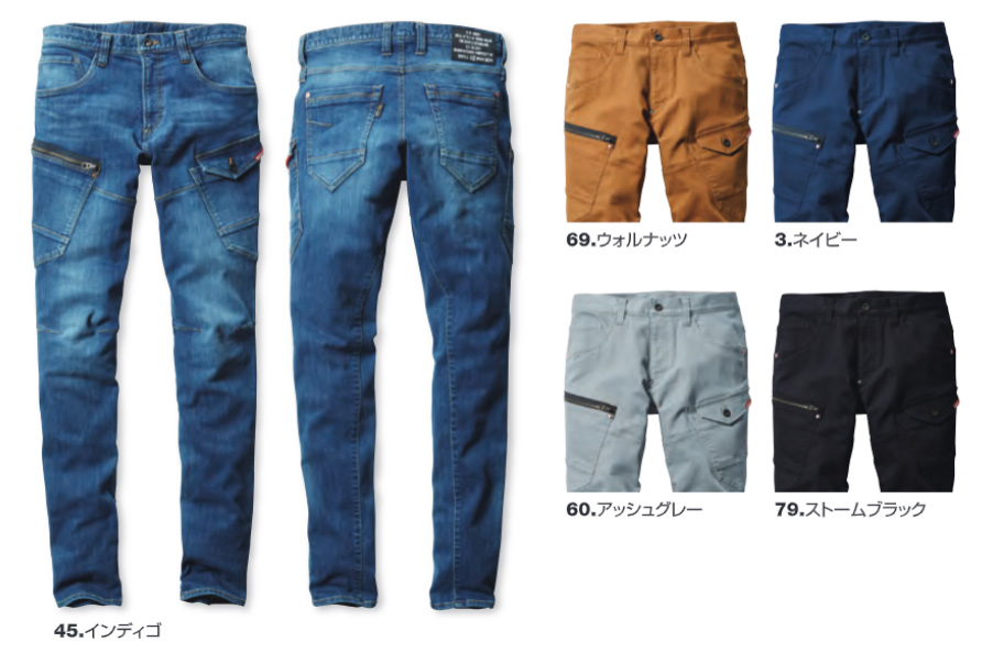 ◎強度と耐久性に優れたコーデュラストレッチデニムを用いた細身なテーパードシルエットのダブルジップ仕様ジャケットとカーゴパンツ。バートルミルスペックロゴでバランス良くミリタリー要素をプラス。ナチュラルなブラストフェードが古着ライクな表情を演出。