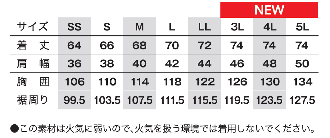 ●この素材は、火気に弱いので火気を扱う現場では着用しないでください。