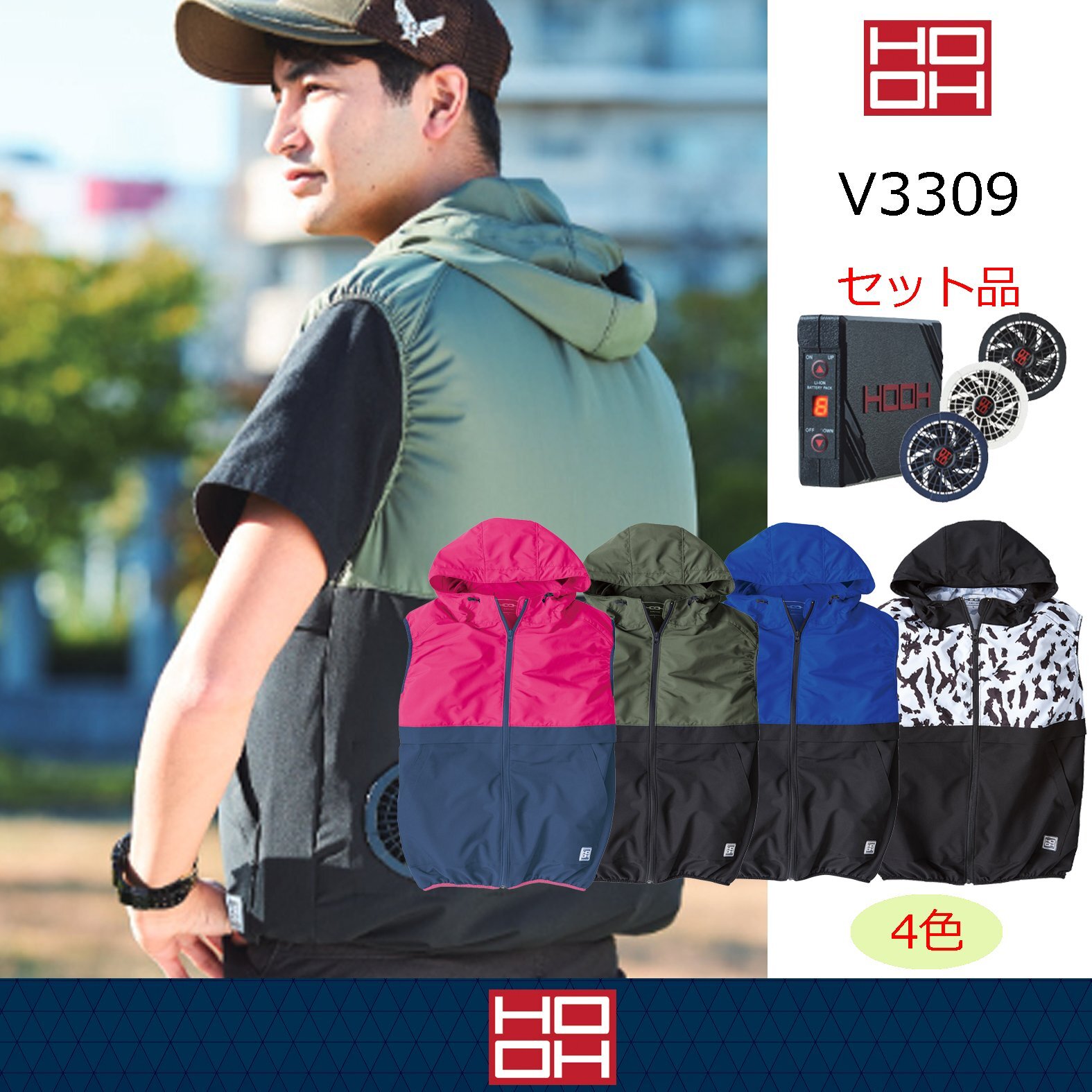 V3309【セット】ブルゾン・ファン・バッテリー(充電器付)/バイカラーフードベスト [V3309SET]