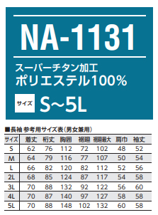 ・NA1131長袖ブルゾン(フルハーネス対応)×1着[ジェットスペーサー:背中×4、肩×2]