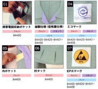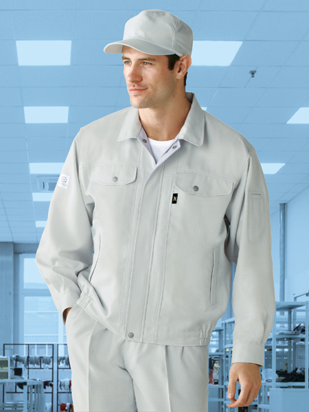 電子部品等の製造物に対する静電気の影響を少なくすることを目的に、ウェア生地の表面に伝導性繊維をグリッド状に入れて表面抵抗値を下げる(=高制電)とともに低発塵の素材を使用。規格に添った仕様を実現するとともに、ケミカルリサイクル対応の商品となっています。静電気により製造物に影響が出る可能性のある現場での着用をおすすめします!