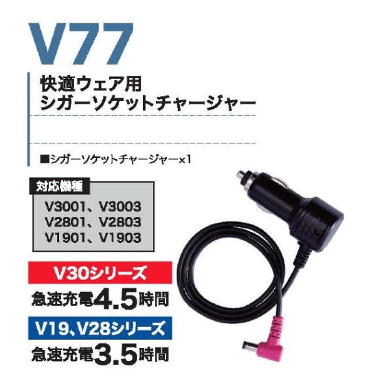 V77 快適ウェア用シガーソケットチャージャー(V30/V28/V19対応)