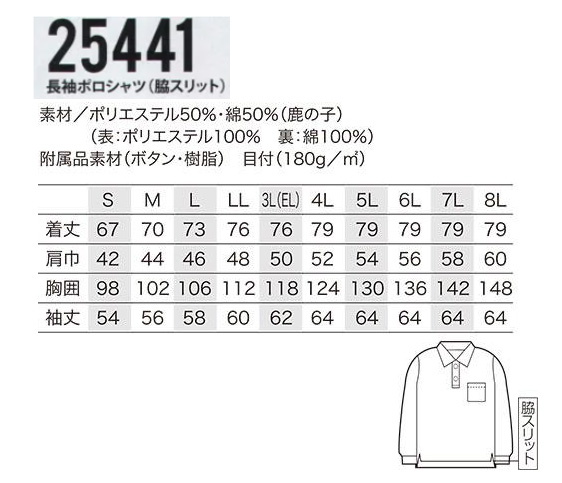 25441 長袖ポロシャツ・鹿の子(8色) [25441]