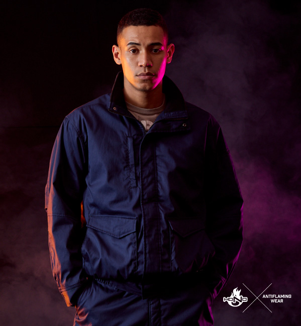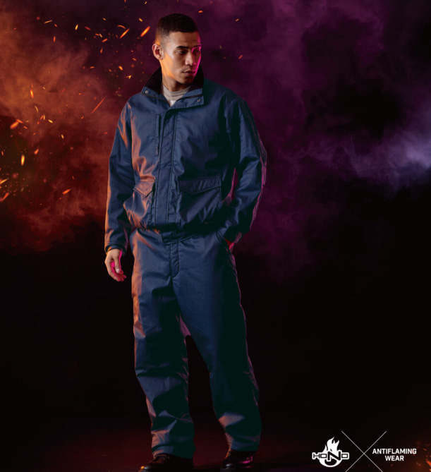 HONO難燃加工綿100%で作られた、耐炎・耐熱・制電性に優れた素材を使用した難燃ウェア。