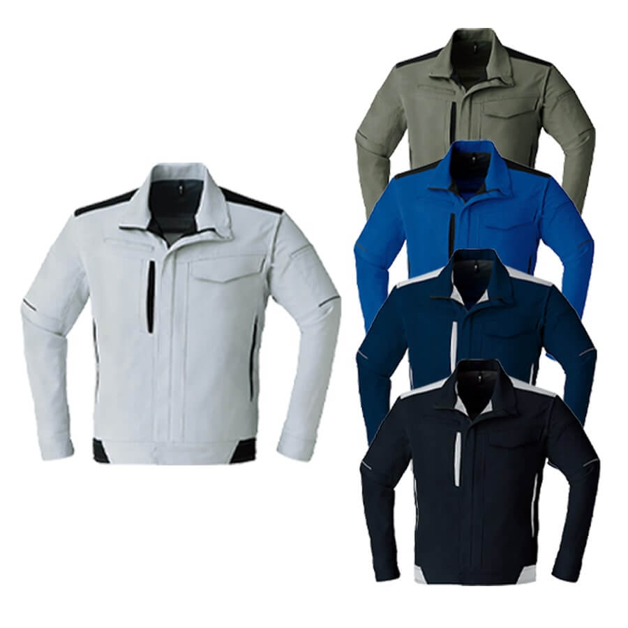 【仕様】長袖ブルゾン、背裏メッシュ仕様、両袖ペン差し付、左胸ペン差し付、右胸野帳対応ポケット、右胸マルチポケット、両袖切替反射パイピング、肘部分ダーツ付、片布付、ファスナー(樹脂)、ボタン(樹脂)、日本製生地