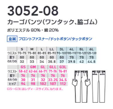 SW80-2503 カーゴパンツ (4色)