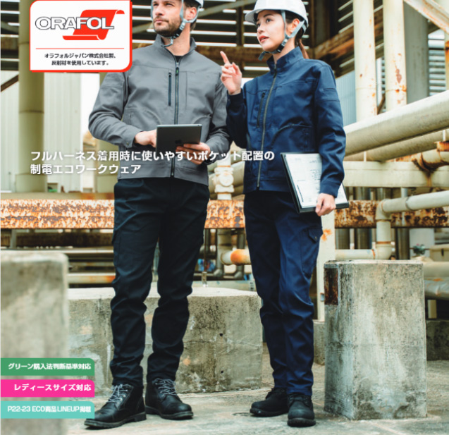 ◎フルハーネス着用時に使いやすいポケット配置の制電エコワークウェア