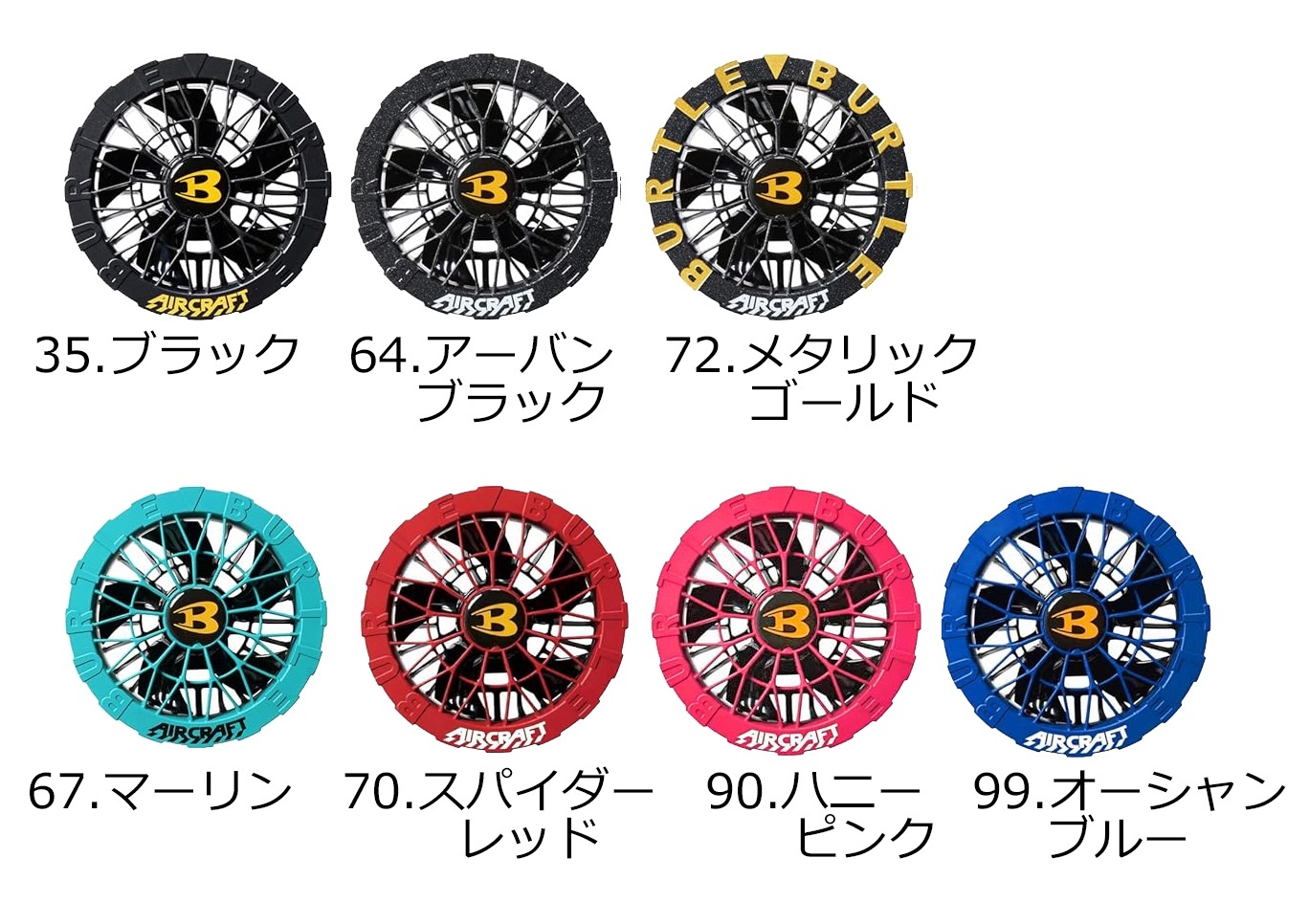 カラー:7色(C35ブラック,C64アーバンブラック,C67マーリン,C70スパイダーレッド,C72メタリックゴールド,C90ハニーピンク,C99オーシャンブルー)
