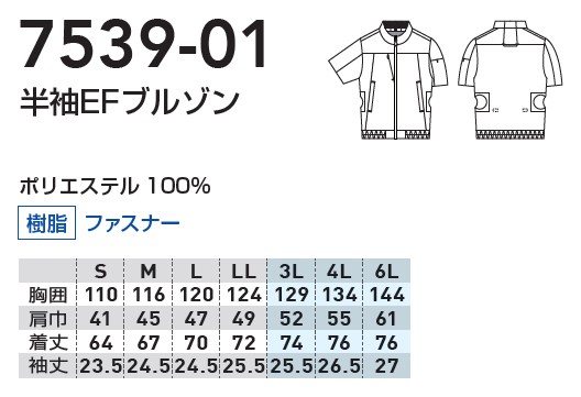 ・7539-01 EF用半袖ブルゾン