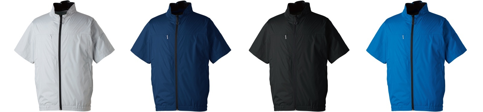 □ブルゾンデザイン:半袖ブルゾン、エアースルーネック、衿裏メッシュ、横付ファン、ファスナー引手、胸ファスナーポケット(野帳が入る)、反射パイピング(背)、ファン取付孔(直径約90mm)、袖ペン差し、ウエストゴム仕様、両側脇ポケット、裏チタンコーティング生地、風洞メッシュ、内側バッテリーポケット、ラインホルダー、樹脂ファスナー