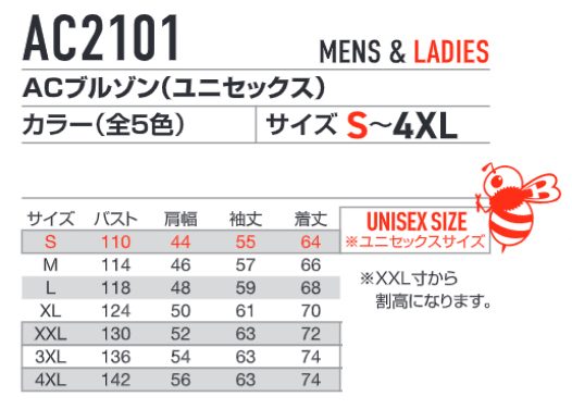 ■同梱内容:ブルゾンのみ AC2101 遮熱長袖ブルゾン(ハイバックファン)×1着