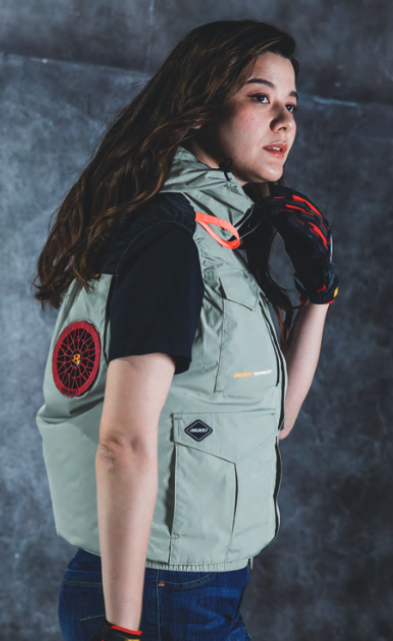 ◎フルハーネス、安全ベスト、ショルダーなど様々なワークギア装着時にファンとの接触を軽減する