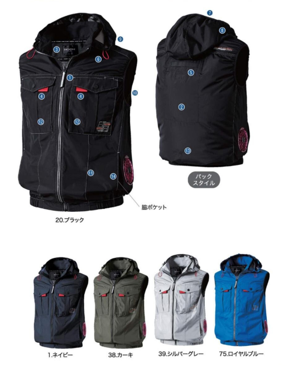 ■同梱内容:ブルゾンのみ V1219フードベスト(フルハーネス対応)・サイドファン×1着
