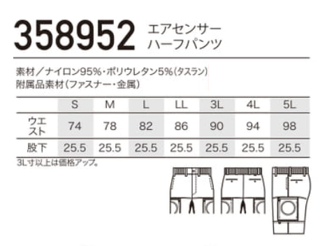 ■同梱内容:ズボン(ハーフ丈) 358952エアセンサーハーフパンツ×1着