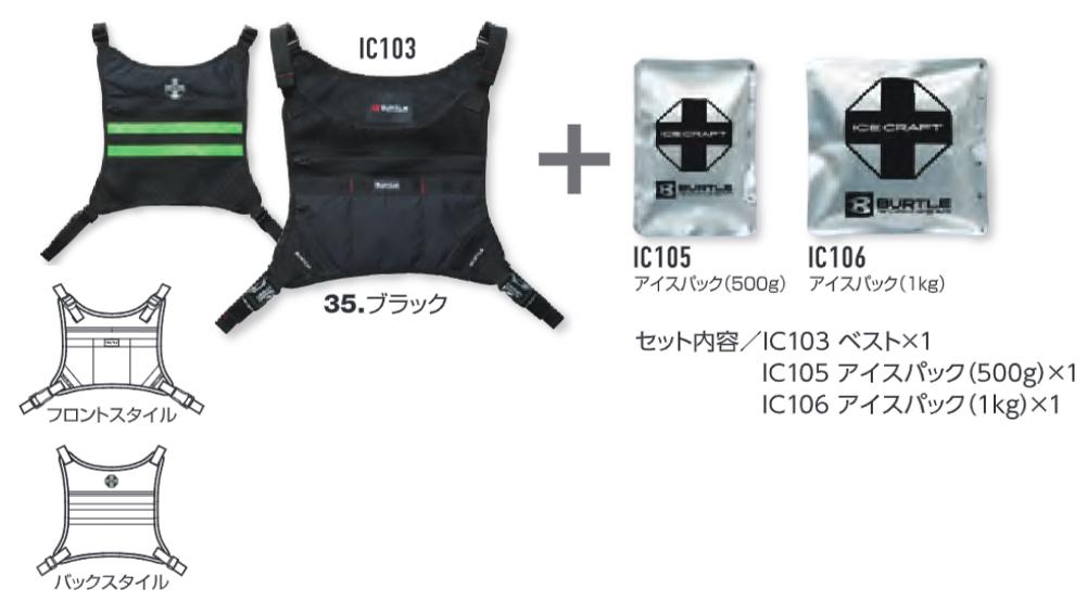 [IC103ベスト×1、IC105アイスパック(500g)×1、IC106アイスパック(1kg)×1]