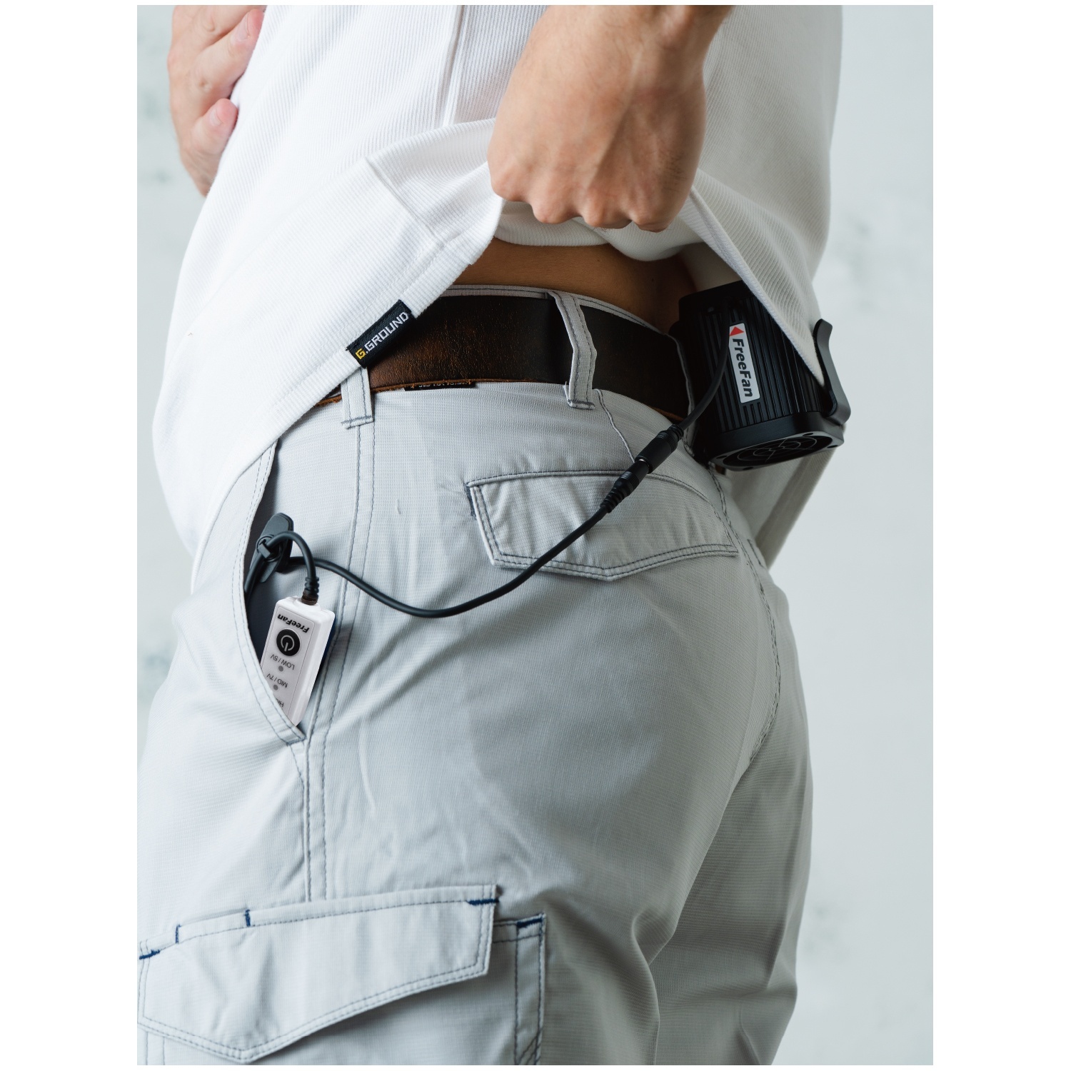 ▶腰掛にして衣服内に入れればEFファンとして使用可能