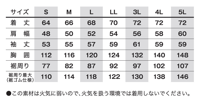 ●この素材は火気に弱いので、火気を扱う環境では着用しないでください。