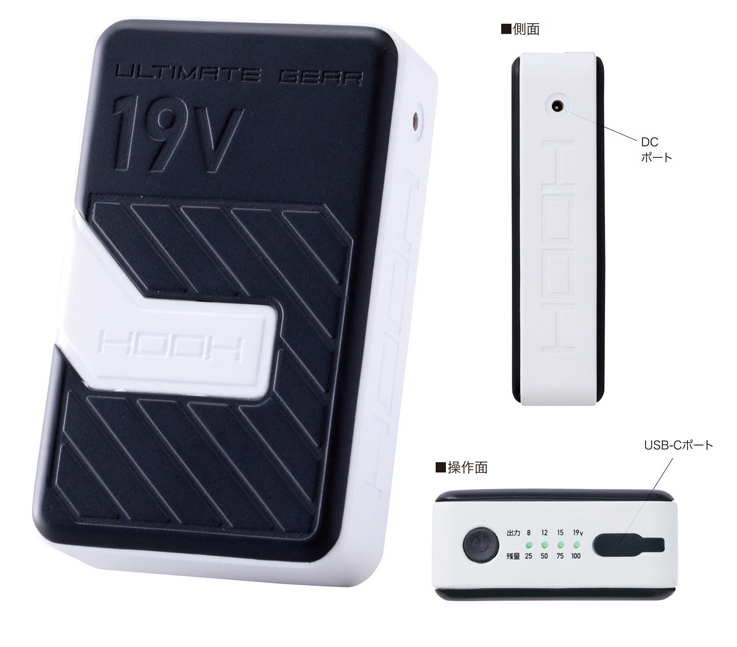 <ご注意>HOOH快適ウェア着用時は、HOOH快適ウェア専用のファン・バッテリーを必ずご使用下さい。他社商品と組み合わせて使用した際に発生する故障やファン落下等の事故につきましては責任を負いません。