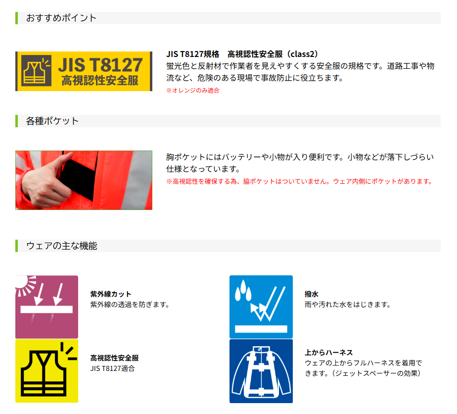 ※高視認性を確保するため、脇ポケットは付いていません。ウェア内側にポケットがあります。