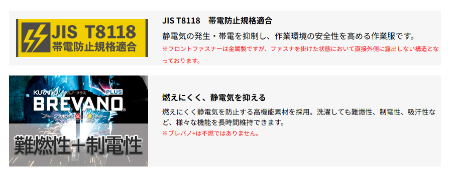 ・静電気の発生・帯電を抑制し、作業環境の安全性を高める作業服です。