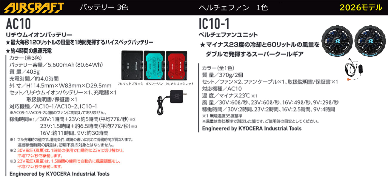 ファンやケーブル、バッテリーの単品は、<AIR CRAFT機器類>からご購入いただけます。