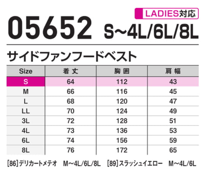 ■同梱内容:ブルゾンのみ 05652 S-AIRサイドファンフードベスト×1着
