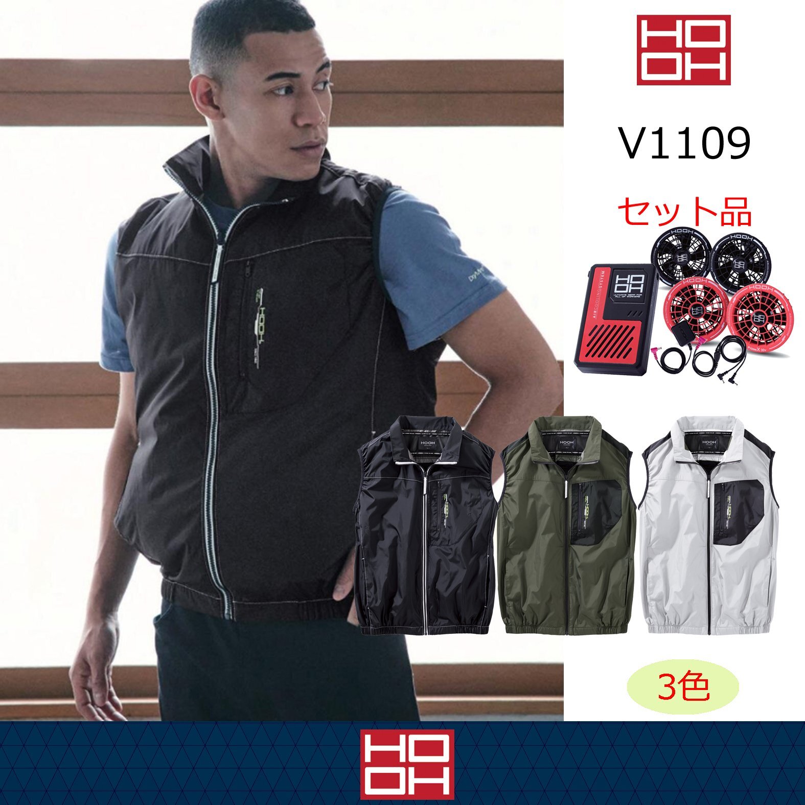 V1109【セット】ブルゾン・ファン・バッテリー(充電器付)/遮熱ベスト・上部ファン