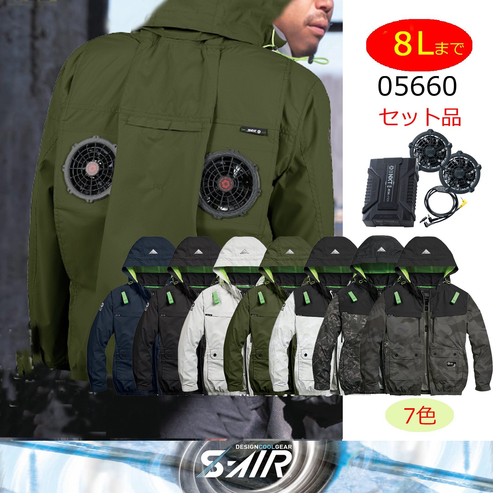 05660【セット】S-AIRブルゾン・ファン・バッテリー(充電器付)/遮熱長袖(ハーネス)・上部ファン