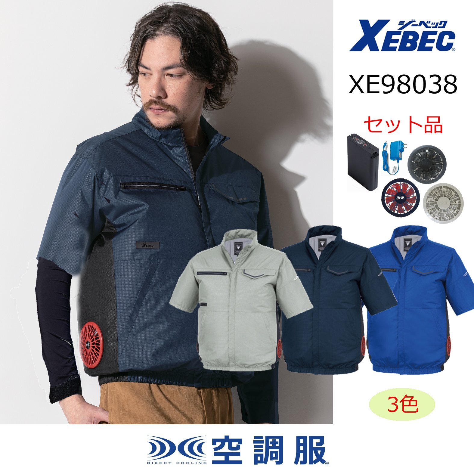 XE98038【空調服(R)セット】ブルゾン・ファン・バッテリー(充電器付)/エコ遮熱半袖(JIS制電)・サイドファン