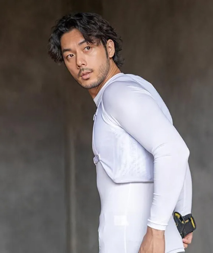 縦入れ保冷剤ポケットと2カ所のフロントバックルで、より快適な着用感を実現。