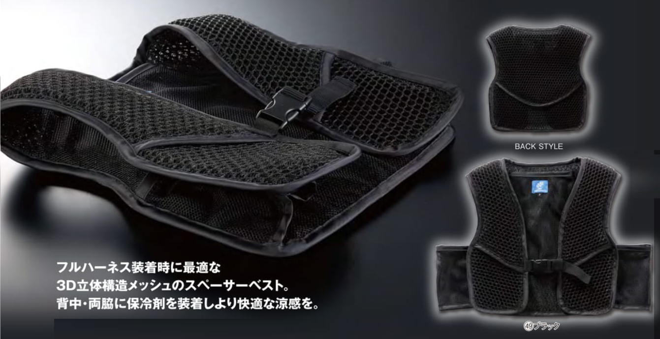 ◎フルハーネス装着時に最適な3D立体構造メッシュのスペーサーベスト