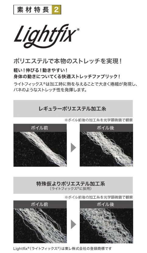 ★「Lightfix(ライトフィックス🄬)」ポリエステルで本物のストレッチを実現!