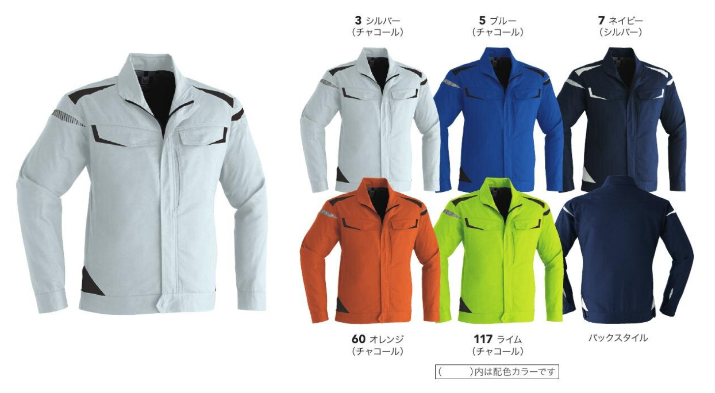 【機能】帯電防止素材、アゼック🄬ストレッチ、校倉構造の清涼素材、吸汗速乾、反射材、スリムシルエット